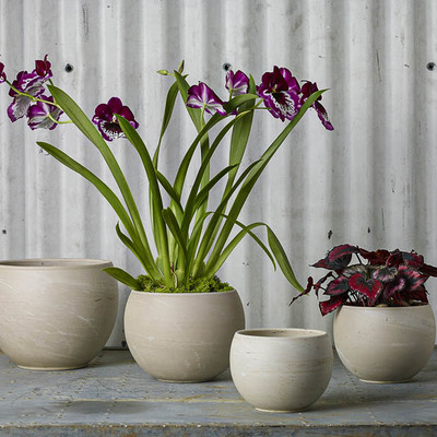 Stone powder is mixed with fiberglass to give a little texture to the many shapes available. We have custom finished many fiberstone planters for colors that are perfectly matched to our clients’ tastes and their other design elements.