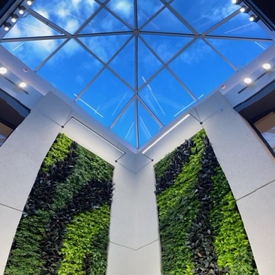Living walls never fail to make a strong, immediate impression on anyone who first comes upon one. Visitors and employees are awed by the vertical expanse of several, hundreds or thousands of plants. The mystery of keeping the beauty of living walls vibrant and healthy is a matter of engineering and horticultural expertise which we are well acquainted after several years of installing and operating living walls. We have designed and maintained walls ranging from 20 square feet to over 400 square feet. We can custom design a living green wall that fits your vision, space and budget.
